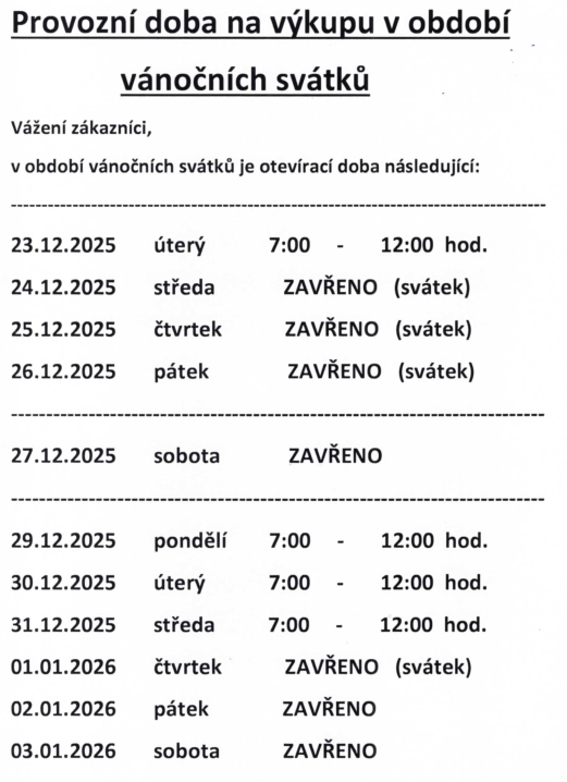 Provozní doba v období vánočních svátků 2025